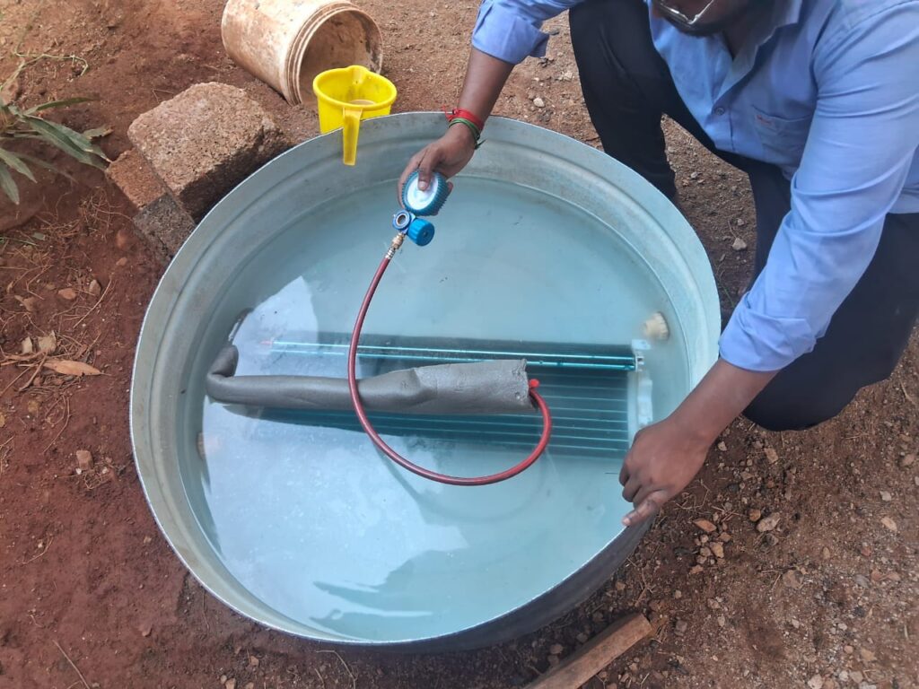 Pressure testing, refrigerant filling (R22, R32, R410A), and sealing leakage points.